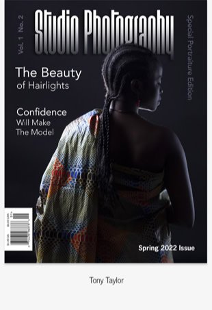AGD 3020 is a digital studio photography class with artificial light—both continuous and strobe. Some projects involve a graphic design step after the custom photography, as is the case with this magazine cover. I provide the nameplate and the barcode. Concept, photography, copywriting, and layout are all created by the students.